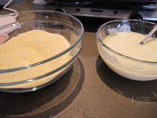 מערבבים את כל החומרים היבשים בקערה גדולה. את החומרים הרטובים מערבבים בקערה ניפרדת.