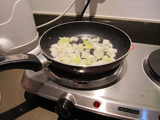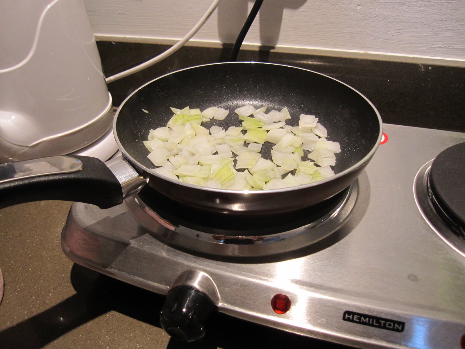 מאדים את הבצל עם ממש ממש מעט שמן.