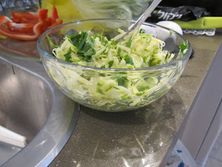 לקערה בינונית מגרדים את הקישוא, מוסיפים את הפיטרוזיליה ומתבלים לפי הטעם. נותנים לנוח לחמש דקות.